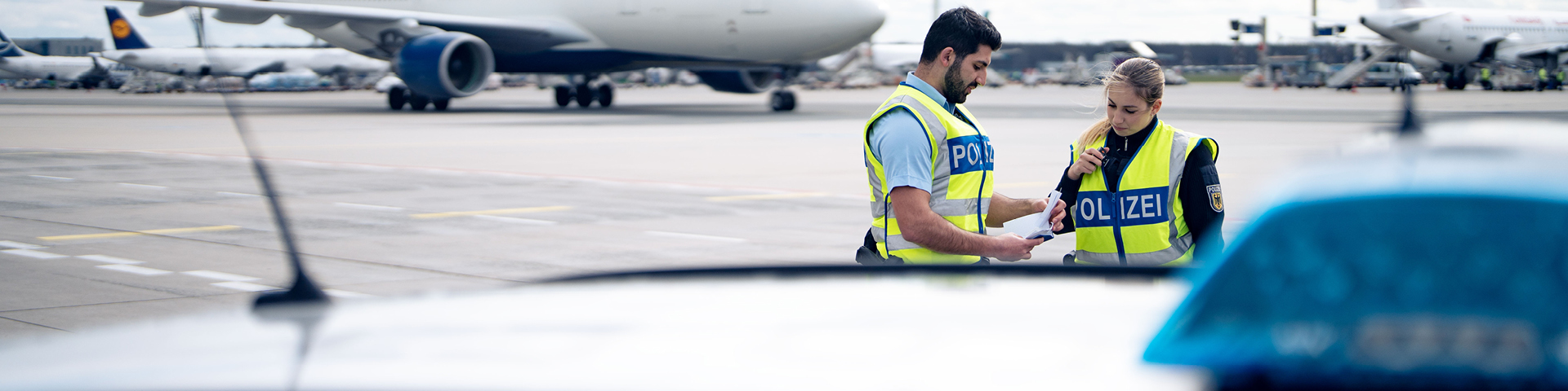 Die Arbeit ist besonders, weil am Flughafen jeden Tag viele verschiedene Menschen zusammenkommen, die alle ein Ziel haben: Schnell und sicher zu verreisen. Wir sorgen dafür, dass alles reibungslos abläuft. Dafür kontrollieren wir die Passagiere und entscheiden, wer einreisen und ausreisen darf. So können Straftaten wie Urkundenfälschungen, unerlaubte Aufenthalte oder Kindesentziehungen erkannt und Straftäter gefasst werden. Aber auch herrenlose Gepäckstücke können für viel Aufregung sorgen. Dann müssen wir ruhig bleiben und die Lage klären.